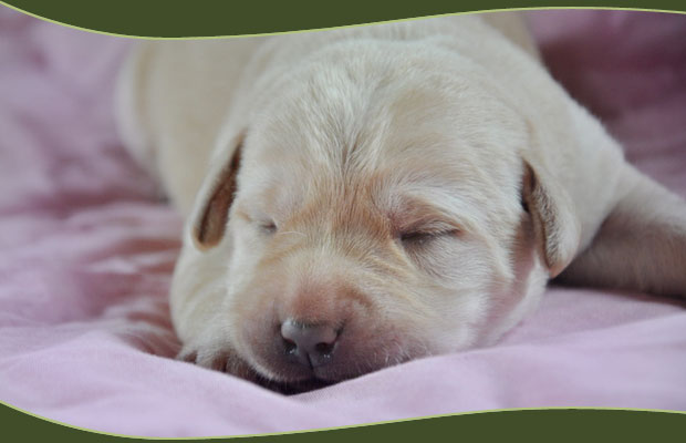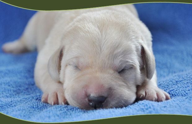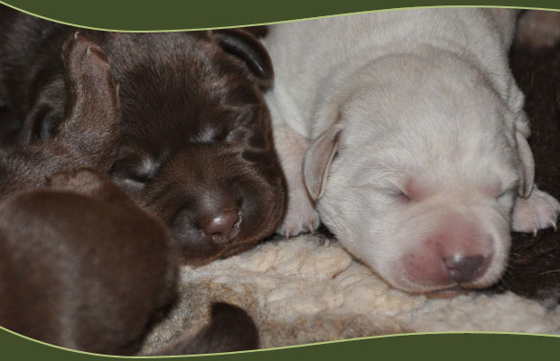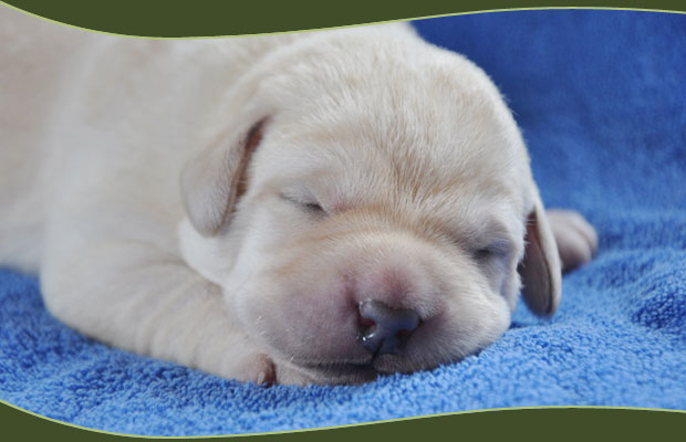 Die Welpen auf der rosa Decke sind die Hündinnen und die auf der Blauen die Rüden.