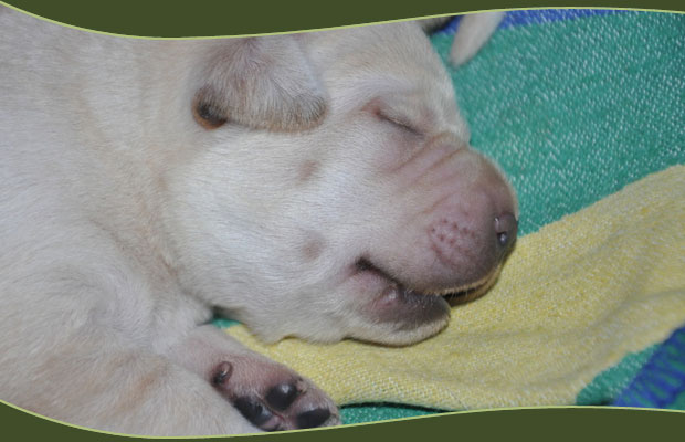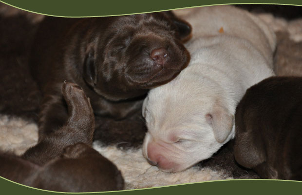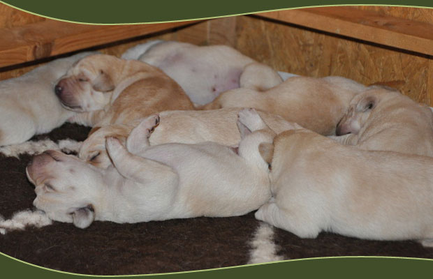 träge in der Wurfkiste von Tag zu Tag dicker werden, robben Bente´s Welpen bereits voller Elan durch ihr Schlafgemach.