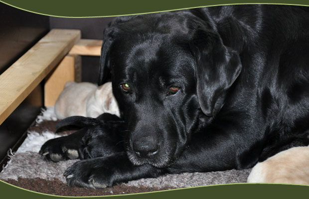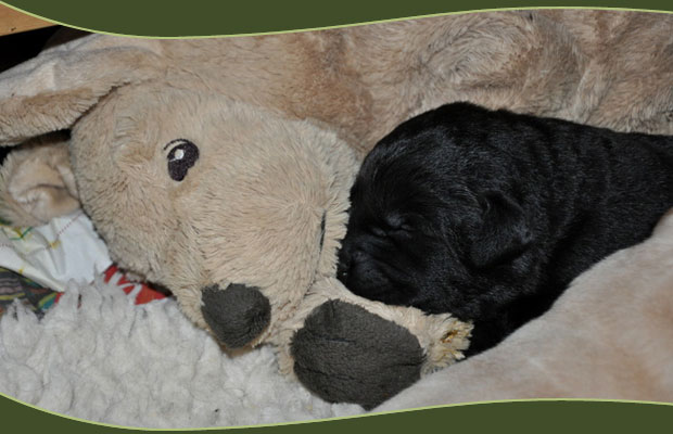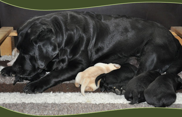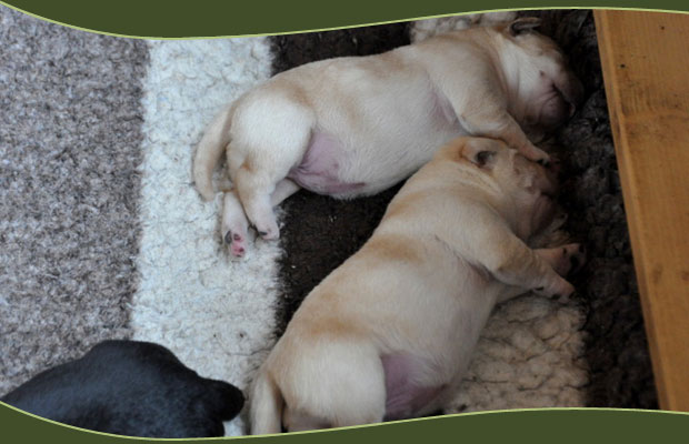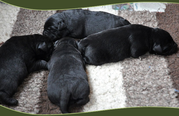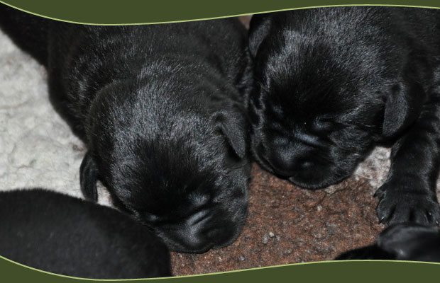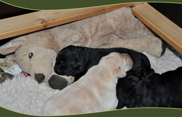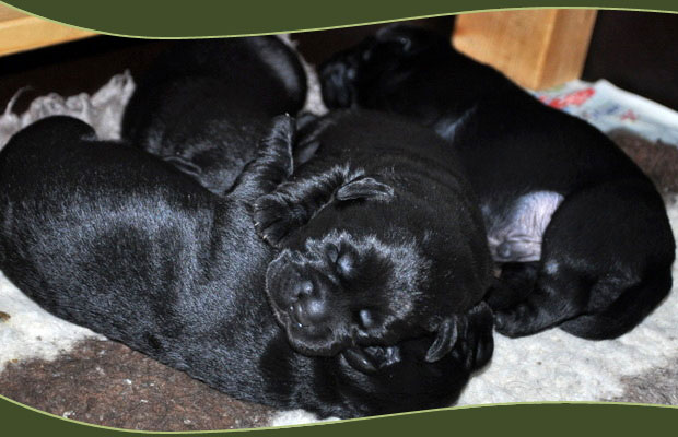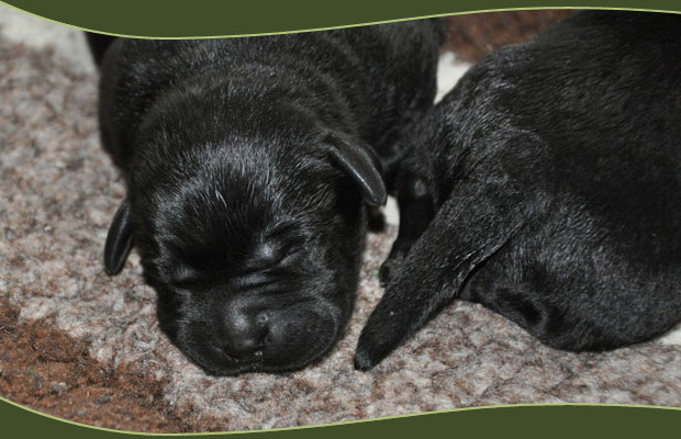 Alle andere 6 sind topfit und entwickeln sich prächtig. Wir freuen uns über 1 schwarze Hündin, 3 schwarze Rüden und 2 gelbe Rüden.