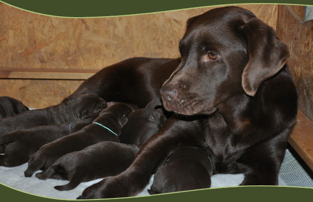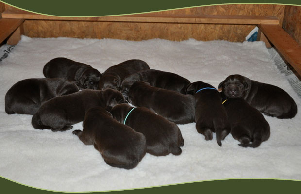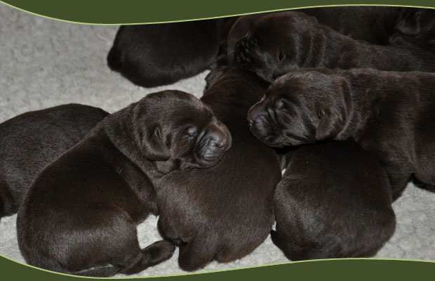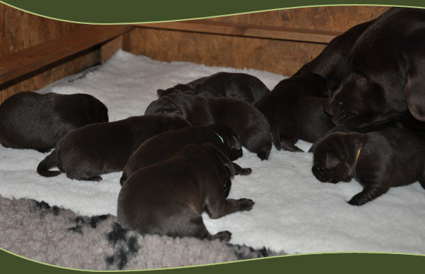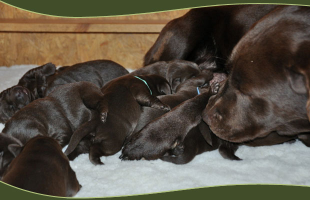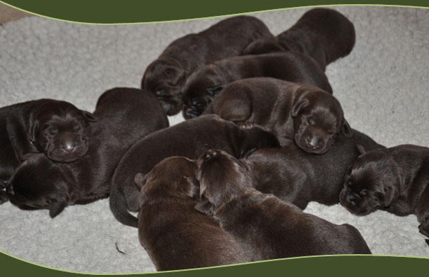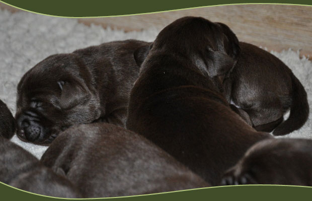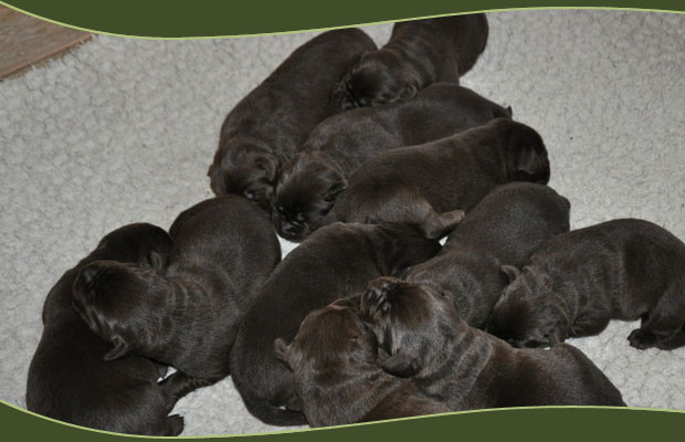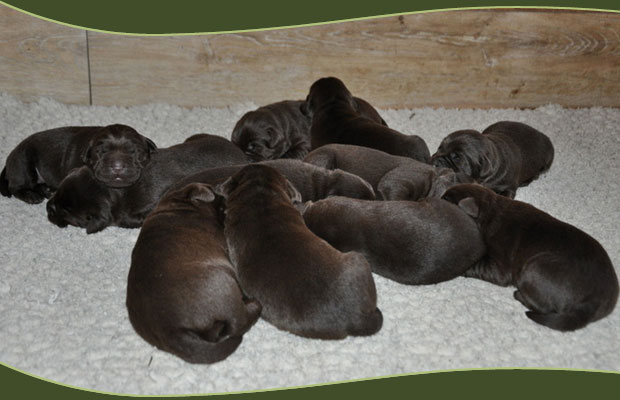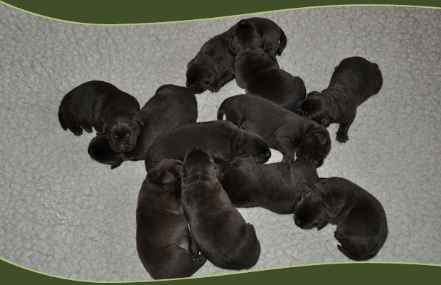 Alle Welpen haben sich von der rasanten Geburt gut erholt und liegen zufrieden mit ihrer Mama in der Wurfkiste. Mali ist sportlich und fit wie eh und je. Man sieht ihr in keinster Weise an, dass sie gerade 11 Welpen zu stämmen hat. Am liebsten würde die verrückte Nudel schon wieder auf Spaziergänge mitgehen und dem Ball hinterherspringen. Hier nun die ersten Bilder von unseren 7 braunen Mädels und 4 braunen Jungs...