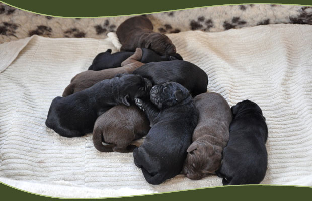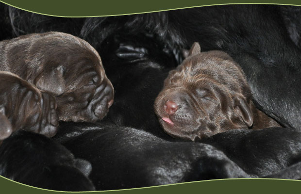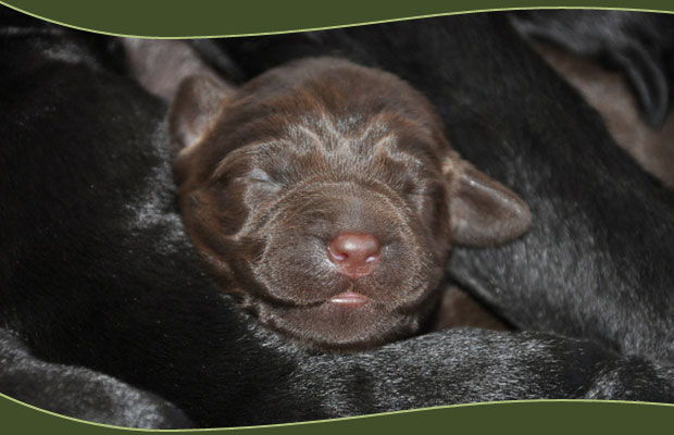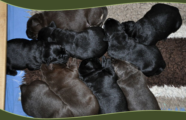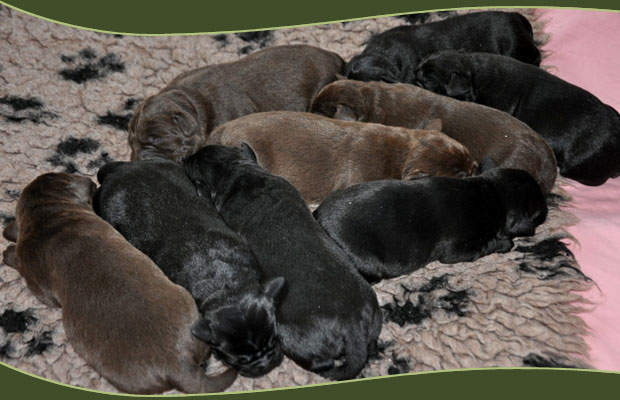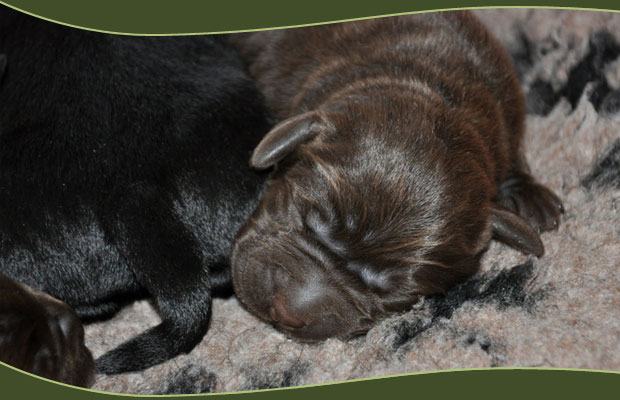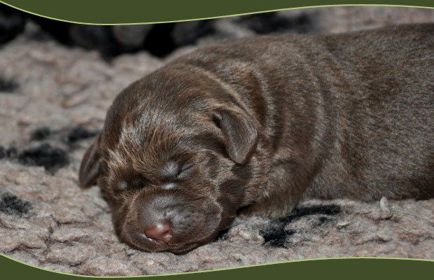 und 4 braune Welpen (1 Rüde, 3 Hündinnen) zur Welt.