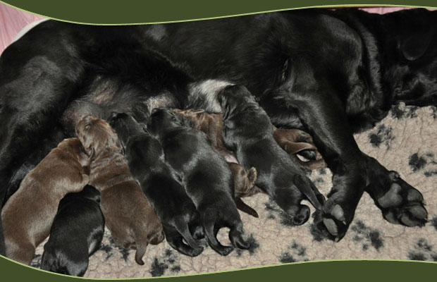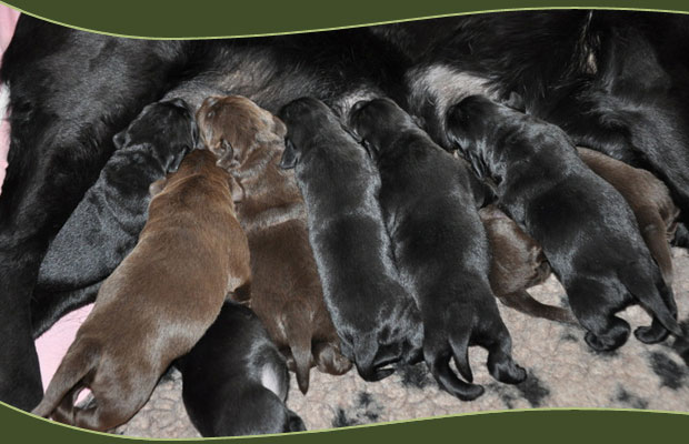 Auch nach der Geburt hat Lila alles im Griff und betreut ihre Welpen rundum vorbildlich.