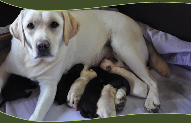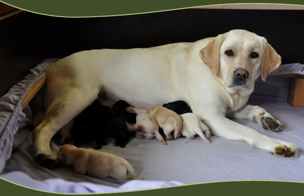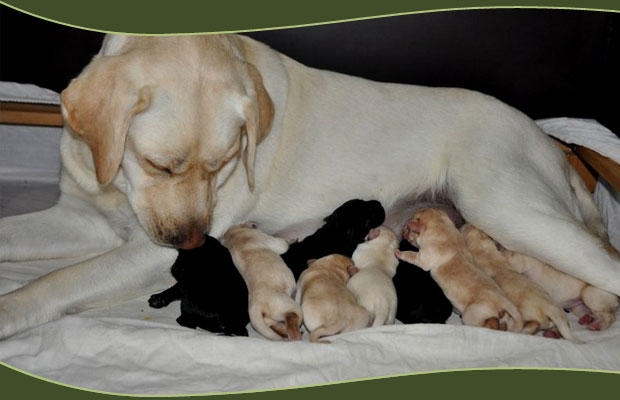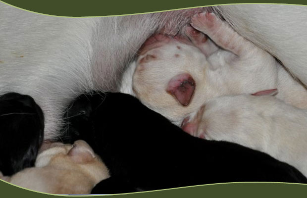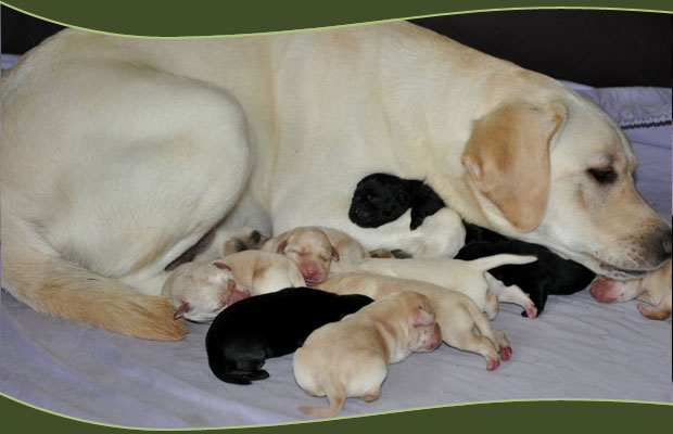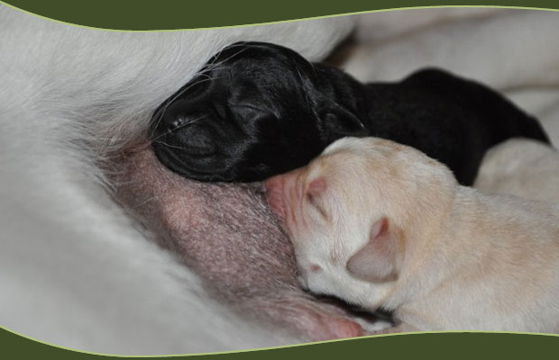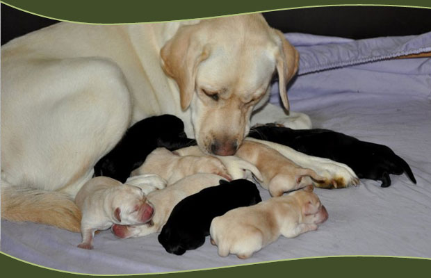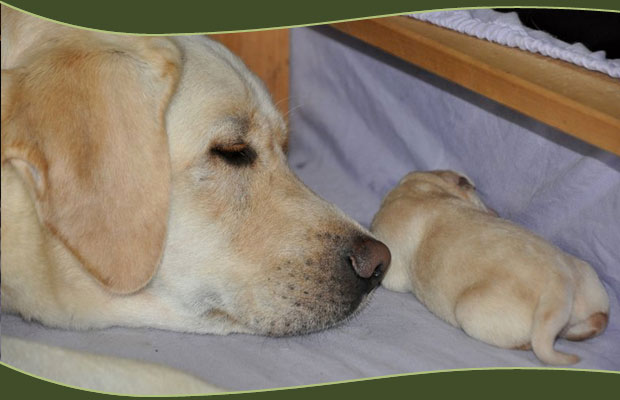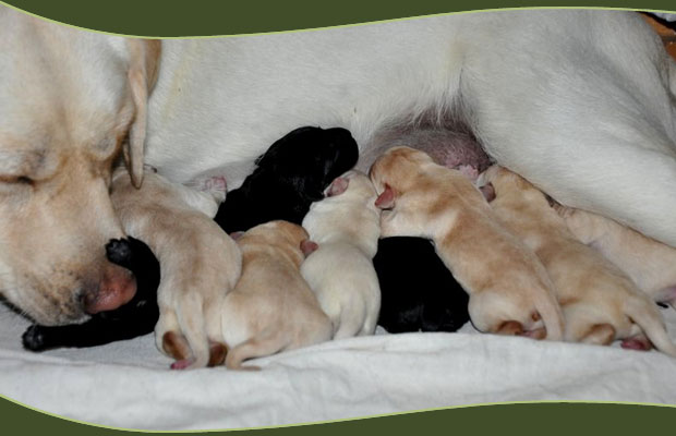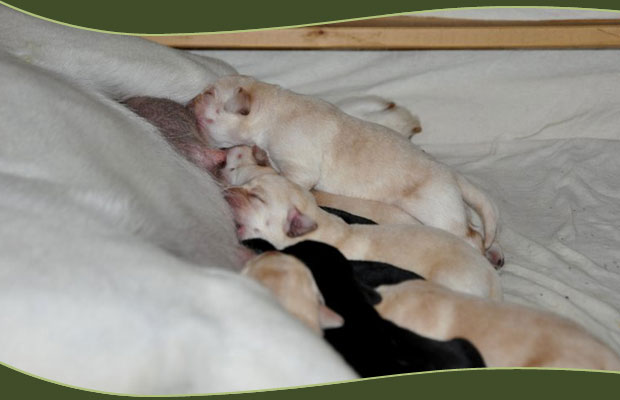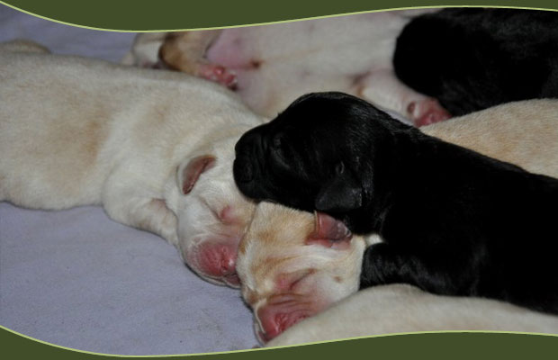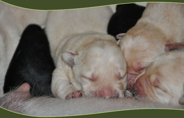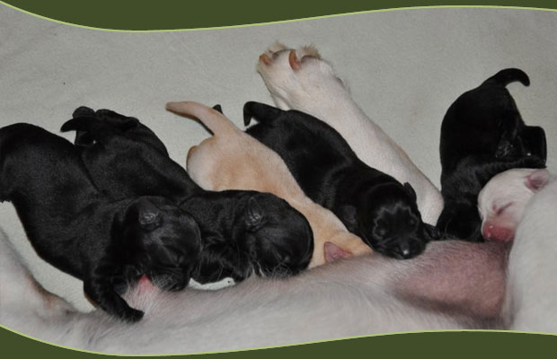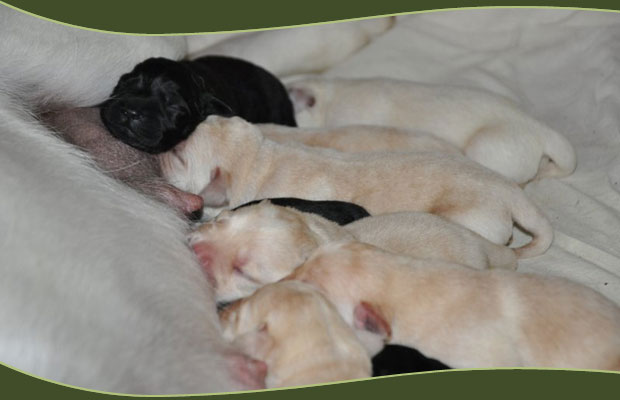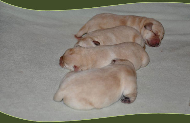6 gelbe Welpen (2 Hündinnen, 4 Rüden)