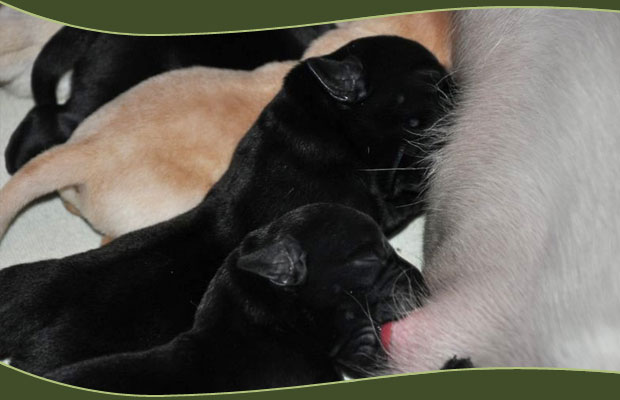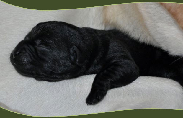 und 4 schwarze Welpen (1 Hündin, 3 Rüden).