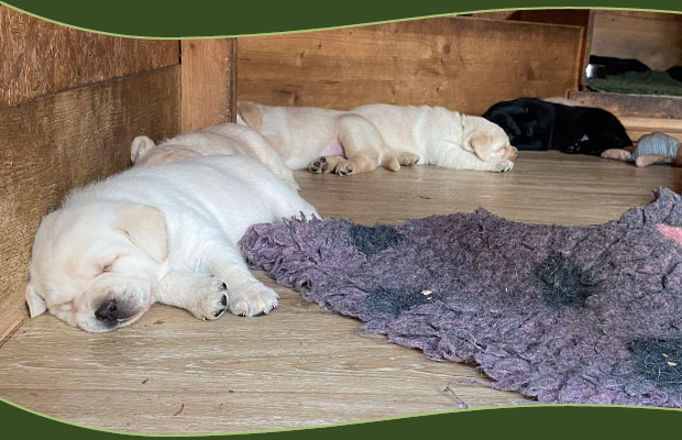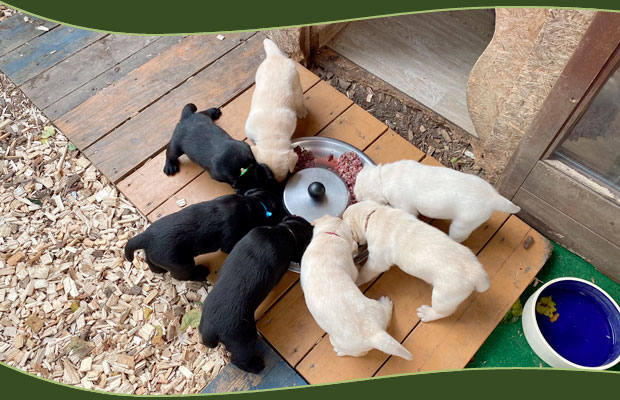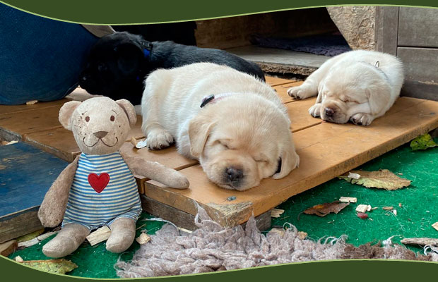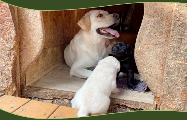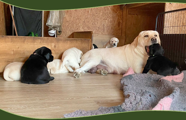 Wer nicht weiß, dass wir aktuell Welpen haben, würde diese Welpen nicht bemerken. Ganz ruhig, zufrieden und glücklich beleben sie mit viel Stille ihr Wurfzimmer und auch schon einen Teil des Gartens.