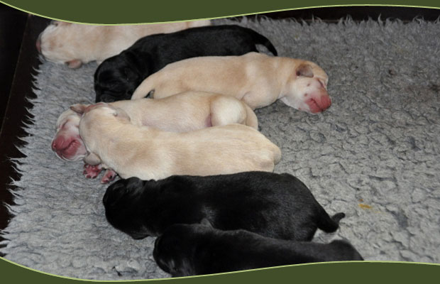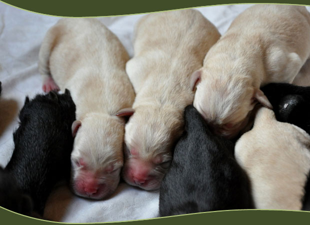 Am 4.9. kamen unsere Welpen zur Welt. Eigentlich wären es 8 Zwerge gewesen, aber einer (ein weißer Rüde) wurde leider bereits tot geboren. Wir freuen uns nun sehr über 4 gelbe Welpen (2 Rüden/2 Hündinnen) und 3 schwarze Welpen (2 Rüden/1 Hündin).