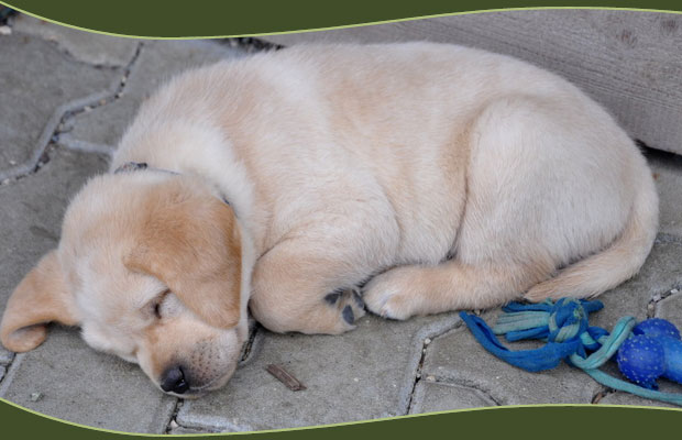 Auch Carramba schaut noch fürsorglich nach ihren Welpen. Im Gegesatz zu Coco findet sie jedoch, dass ihre Kleinen für die Säugephase inzwischen eindeutig zu groß sind, weshalb sie ihre Welpen nur noch ungern trinken lässt. Dafür teilt sie sehr großzügig ihre Knochenration mit ihnen ;-)