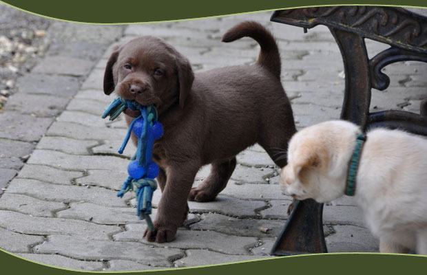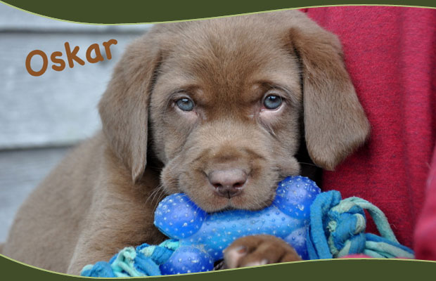 Seit letztem Wochenende ist die Aufteilung der Welpen an die zukünftigen Familien abgeschlossen. Jeder hat nun seinen festen Platz gefunden und jeder hat inzwischen auch schon seinen eigenen Namen.