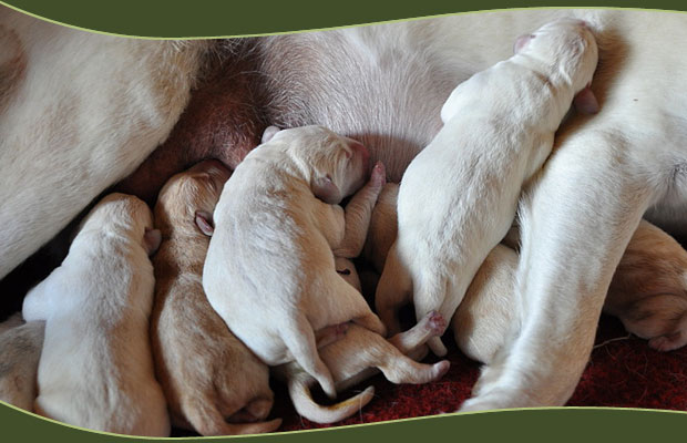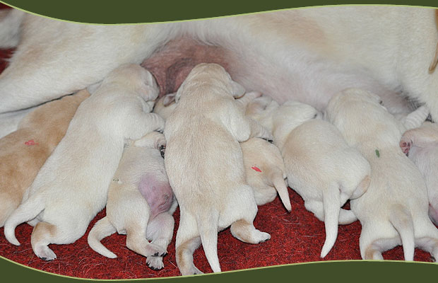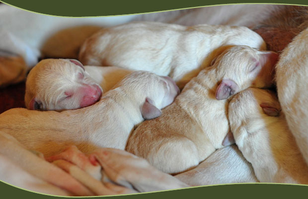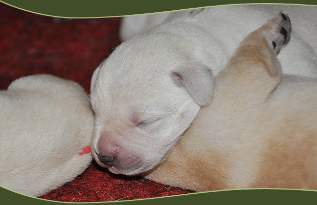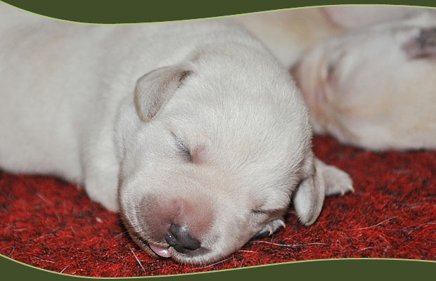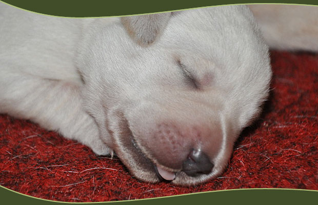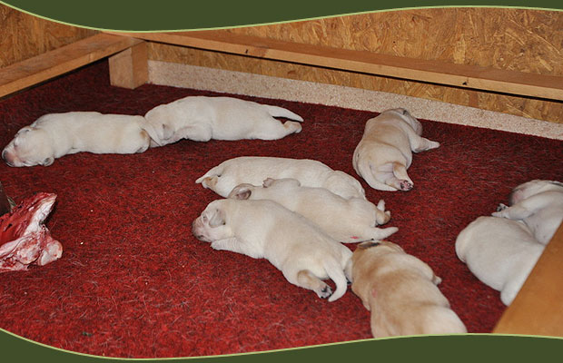 12. August: Alle Welpen sind wohl auf. Bente kümmert