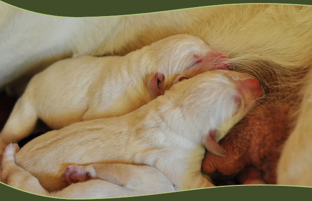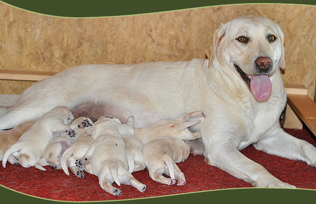 sich nach wie vor rührend um ihre Kinder und verlässt die Wurfkiste nur nach Aufforderung.