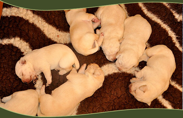 Die Welpen nehmen alle gut an Gewicht zu und sind bis jetzt noch sehr genügsam. Das erste Fotoshooting hat ihnen allerdings überhaupt nicht zugesagt, so dass es für mich äußerst schwer war, einigermaßen schöne Fotos zu machen. Ich hoffe nur, dass die Unlust an den leeren Mägen lag, sonst werde ich nach diesem Wurf mein erstes graues Haar bekommen :-o