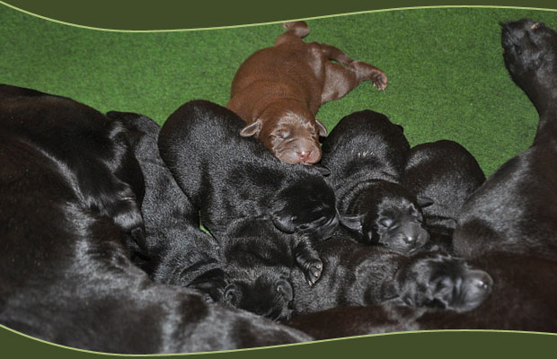 Am 05. April erblickten Josies Welpen das Licht der Welt. Es tummeln sich 2 schwarze Buben, sowie eine braune und 4 schwarze kleine Damen in der Wurfbox.